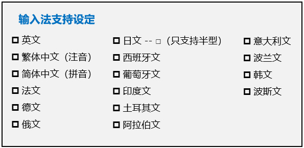 | 软件功能 | 多语输入 |