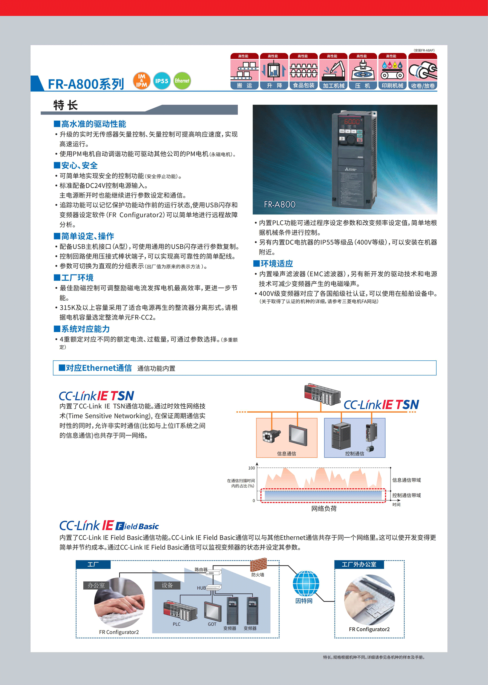 三菱变频器FR-E800 系列以全能网络通信、智能诊断和超长寿命三大核心优势,成为工业自动化领域的理想选择,特别适合智能工厂建设和设备升级改造。如果您需要一款能无缝接入现有工业网络、减少维护成本且具备前瞻性诊断能力的紧凑型变频器,FR-E800 系列无疑是最佳选择。